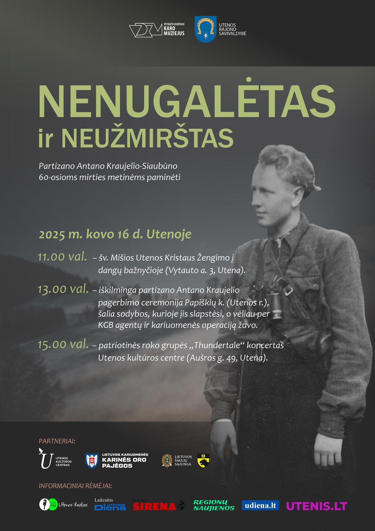 Partneriai: Utenos kultūros centras, Lietuvos Karinės oro pajėgos / LTU Air Force, Lietuvos šaulių sąjungos Plk. Prano Saladžiaus šaulių 9-oji rinktinė