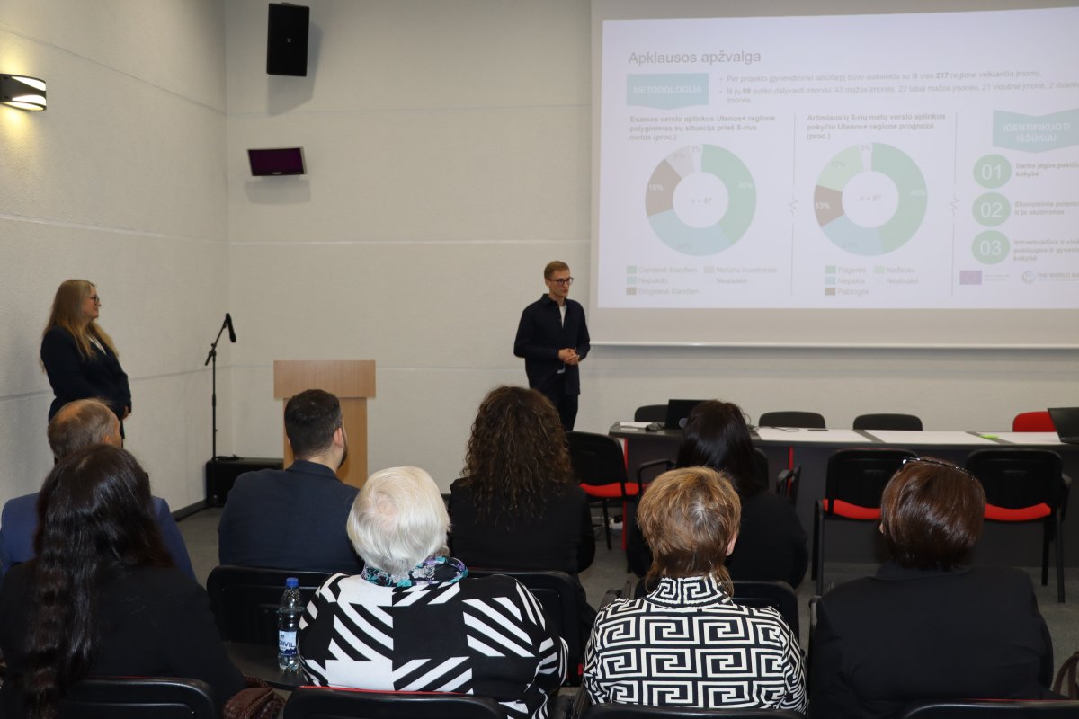 Renginio metu pristatyti vietos verslo apklausos rezultatai. Iš viso visose Utenos+ regiono savivaldybėse buvo apklaustos 88 įmonės. Apklausa daugiausia rėmėsi darbo jėgos, investicijų ir plėtros planų, finansavimo šaltinių bei bendros verslo aplinkos vertinimu. Analizė išskyrė tris prioritetines probleminių sričių grupes, dėl kurių diskutuota dirbtuvėse.