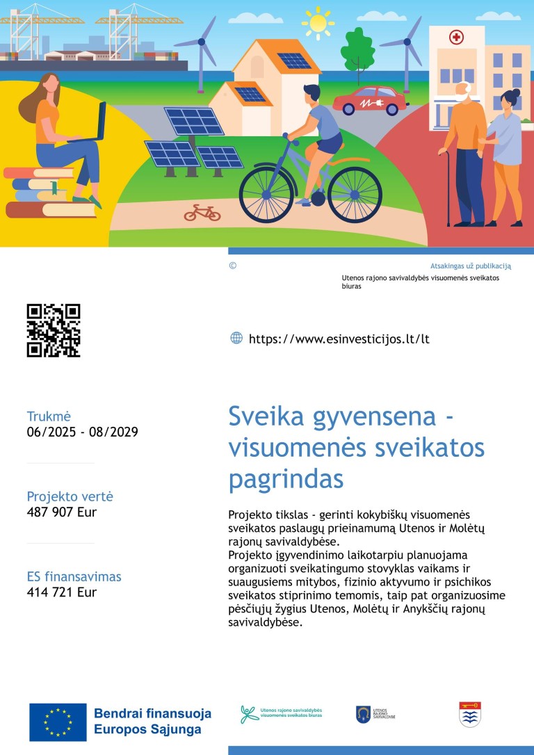 Projekto tikslas - gerinti kokybiškų visuomenės sveikatos paslaugų prieinamumą Utenos ir Molėtų rajonų savivaldybėse. Projekto tikslinė grupė – socialiai pažeidžiami, socialinę riziką (atskirtį) patiriantys asmenys, neįgalūs asmenys, senyvo amžiaus asmenys, vaikai, jaunimas, rizikos sveikatai veiksnius patiriantys asmenys, asmenys, priskiriami pagrindinių lėtinių neinfekcinių ligų didelės rizikos grupėms, gyvenantys Utenos ir Molėtų rajonų savivaldybėse. Vaikai, jaunimas ir jų aplinkos nariai (šeima, mokykla, bendruomenė).