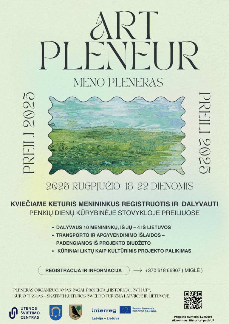 2025 m. rugpjūčio 18–22 d. Utenos regiono menininkai kviečiami dalyvauti tarptautinėje penkių dienų kūrybinėje stovykloje Preiliuose (Latvija). Tai išskirtinė galimybė kurti istorinėje aplinkoje, semtis įkvėpimo iš vietos kultūros, bendradarbiauti su kolegomis iš Latvijos bei tapti tarptautinio projekto dalimi.