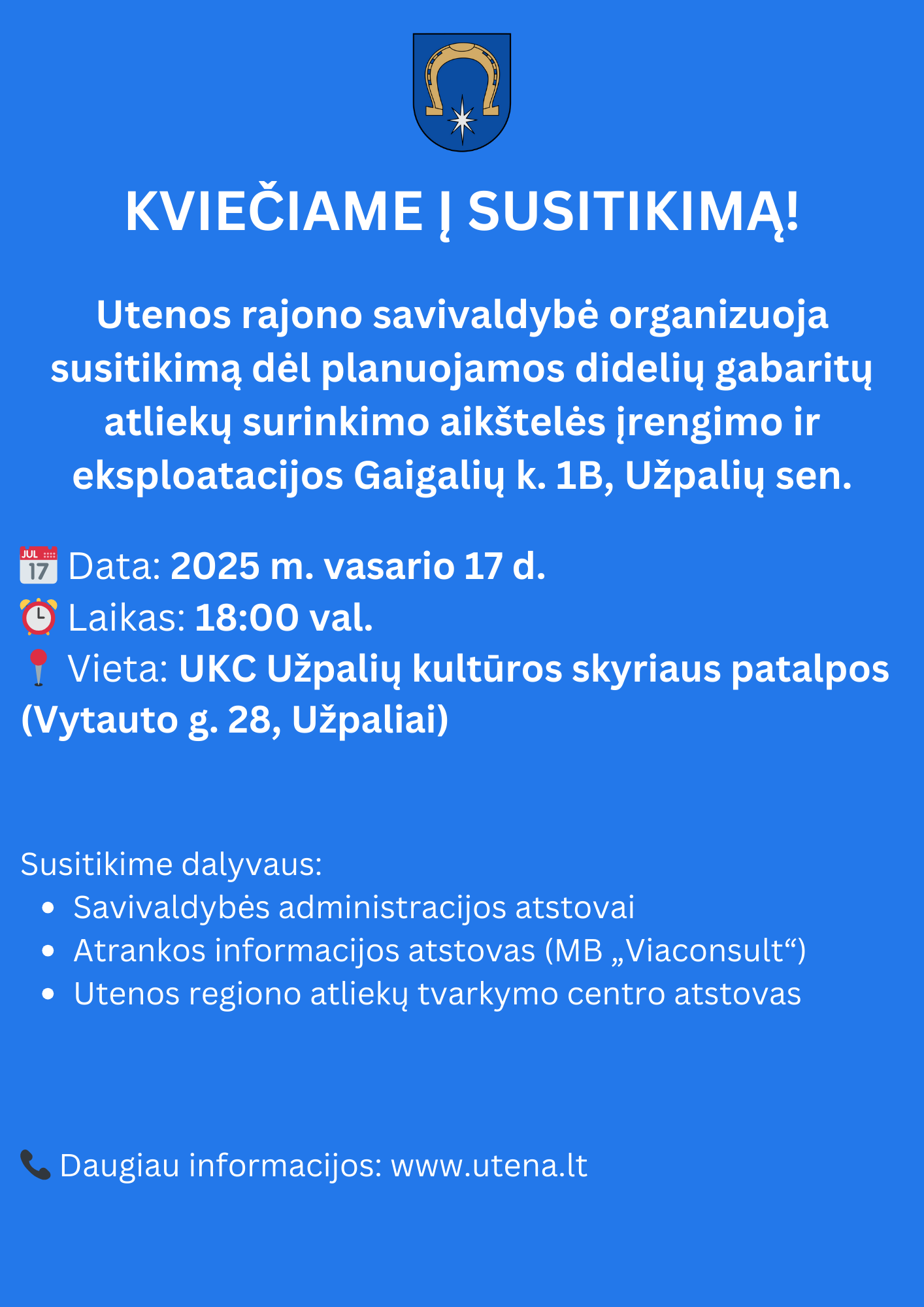 Utenos rajono savivaldybės administracija, įgyvendindama Utenos rajono savivaldybės 2025 m. užimtumo didinimo programą (toliau – Programa), patvirtintą Utenos rajono savivaldybės tarybos 2025 m. sausio 30 d. sprendimu Nr. TS-39 „Dėl Utenos rajono savivaldybės 2025 metų užimtumo didinimo programos patvirtinimo“, skelbia darbdavių atranką žemiau išvardintiems laikiniesiems darbams Utenos rajono teritorijoje:
