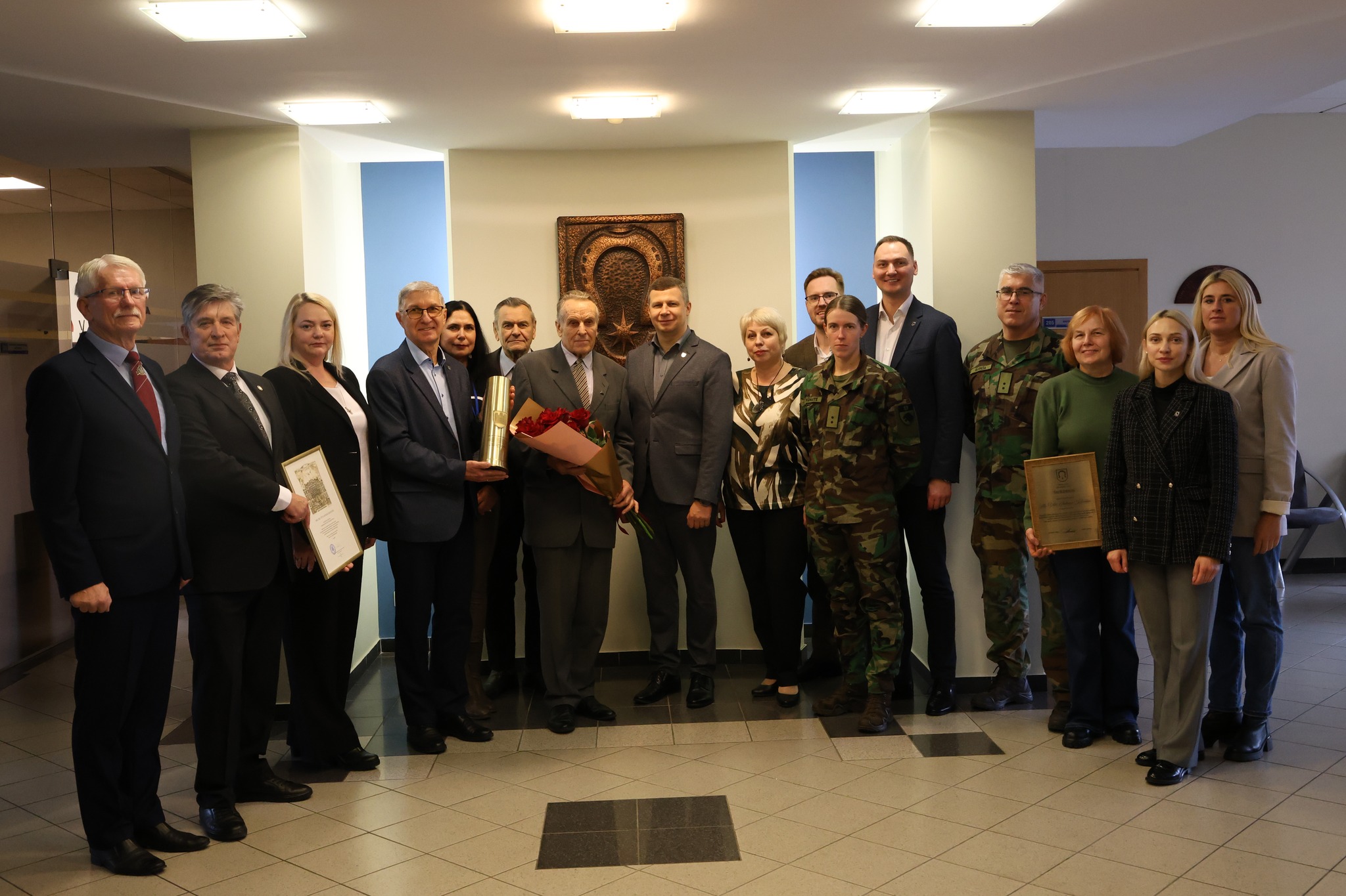 Visuomet būsime dėkingi už Jūsų neįkainojamą atsidavimą tėvynei bei ilgametę tarnybą. Garbingos sukakties proga linkime džiaugsmo pripildytų dienų, stiprios sveikatos ir sėkmės kiekviename Jūsų žingsnyje.